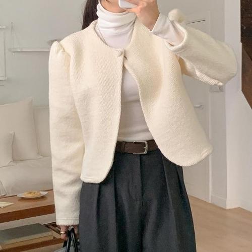 [다잇템][다잇템] 여자 울니트 덤블 단추 재킷 라운드 페이크퍼 가디건_19321705_588872