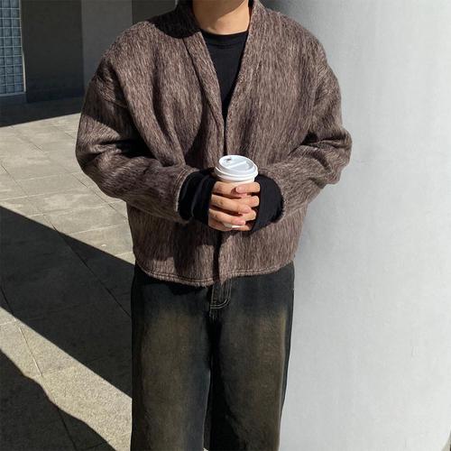 [모노폴로지]MP 울 앙고라 모헤어 미니멀 오버핏 소프트 퍼 크롭 노카라 가디건 트위드 자켓