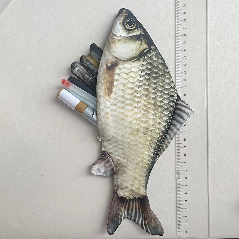 TEMU 리얼리스틱 코이 피쉬 모양 펜 케이스 - 내구성 있는 폴리에스터 연필 홀더, 비늘과 지느러미 디자인, 귀여운 학교 및 사무실 정리함 - 물고기 테마 선물 (할로윈, 크리스마스) - 펜 호환 가능