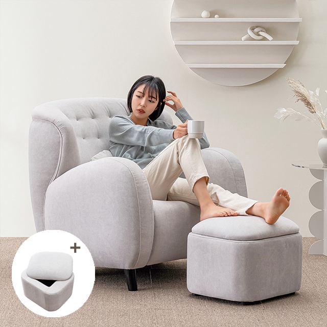 희망일설치/ 바비 아쿠아텍스 패브릭 암체어 안락의자 1인 소파 +스툴증정