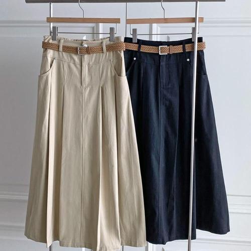 [다잇템][다잇템] 여자 베이직 스트랩 맞주름 롱 위빙 스커트_22388253_588872