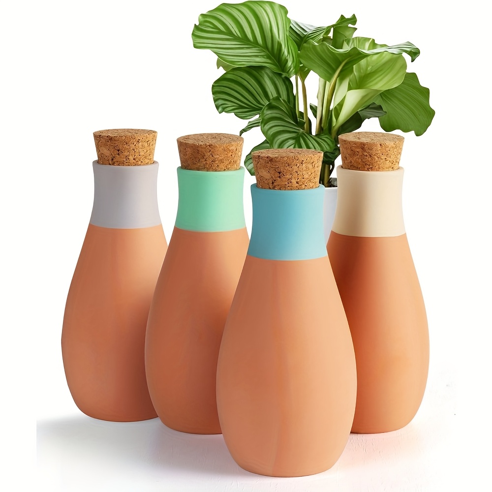 TEMU 4개 테라코타 물주기 글로브, 자동 물주기, 실내외 사용을 위한 테라코타 화분, 간편한 식물 물 공급, 화이트, 라이트 브라운 및 피치, 코르크 뚜껑 포함, 실내외 식물에 적합, 노동절, 어버이날