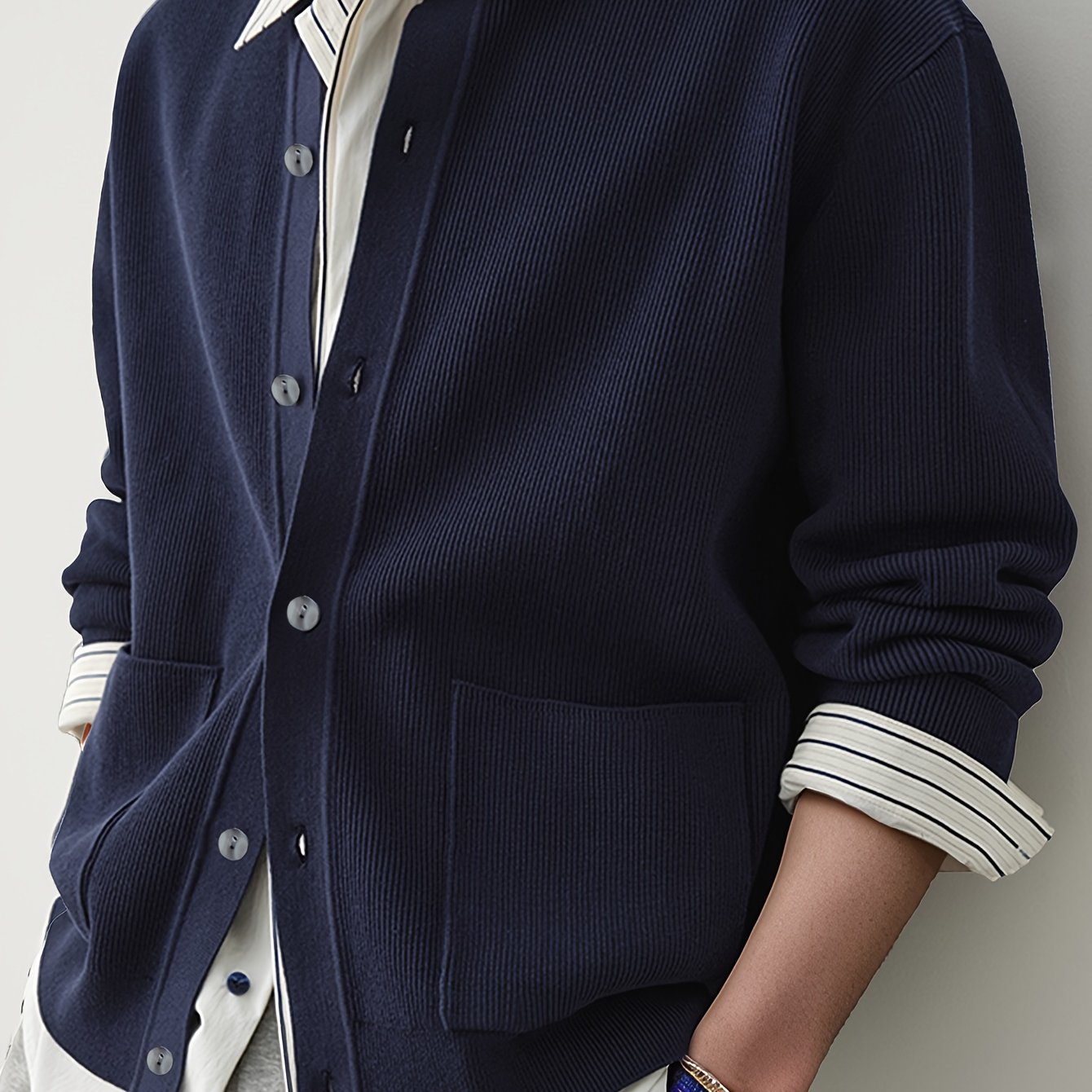 TEMU 남성용 캐주얼 니트 가디건 스웨터 - 단색 긴팔 버튼 프론트, 레귤러 핏 라운드 넥 풀오버, 가을 겨울용, 청바지 & 드레스 팬츠와 어울리는 베르사틸레이어링 피스, 편안한 질감|가디건|남자옷