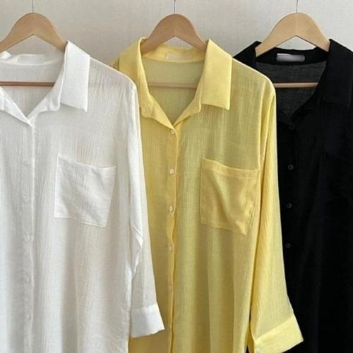 [JHPM6Q6U_51IB]브이넥 거즈면 봄 여름 블라우스 긴팔 셔츠