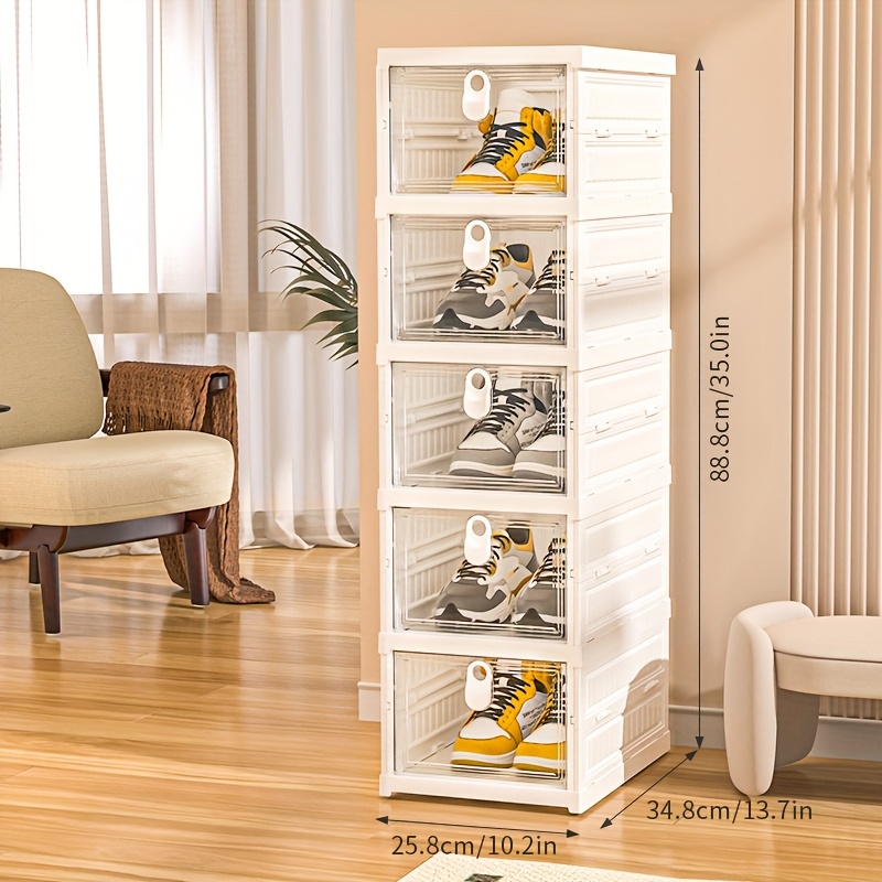 TEMU 투명한 문이 있는 접이식 신발 상자 세트, 먼지 방지 통합 신발 상자, 다층 신발 캐비닛, 침실, 복도, 욕실, 사무실, 거실에서 신발 선반에 적합, 가정용 보관 및 정리용.