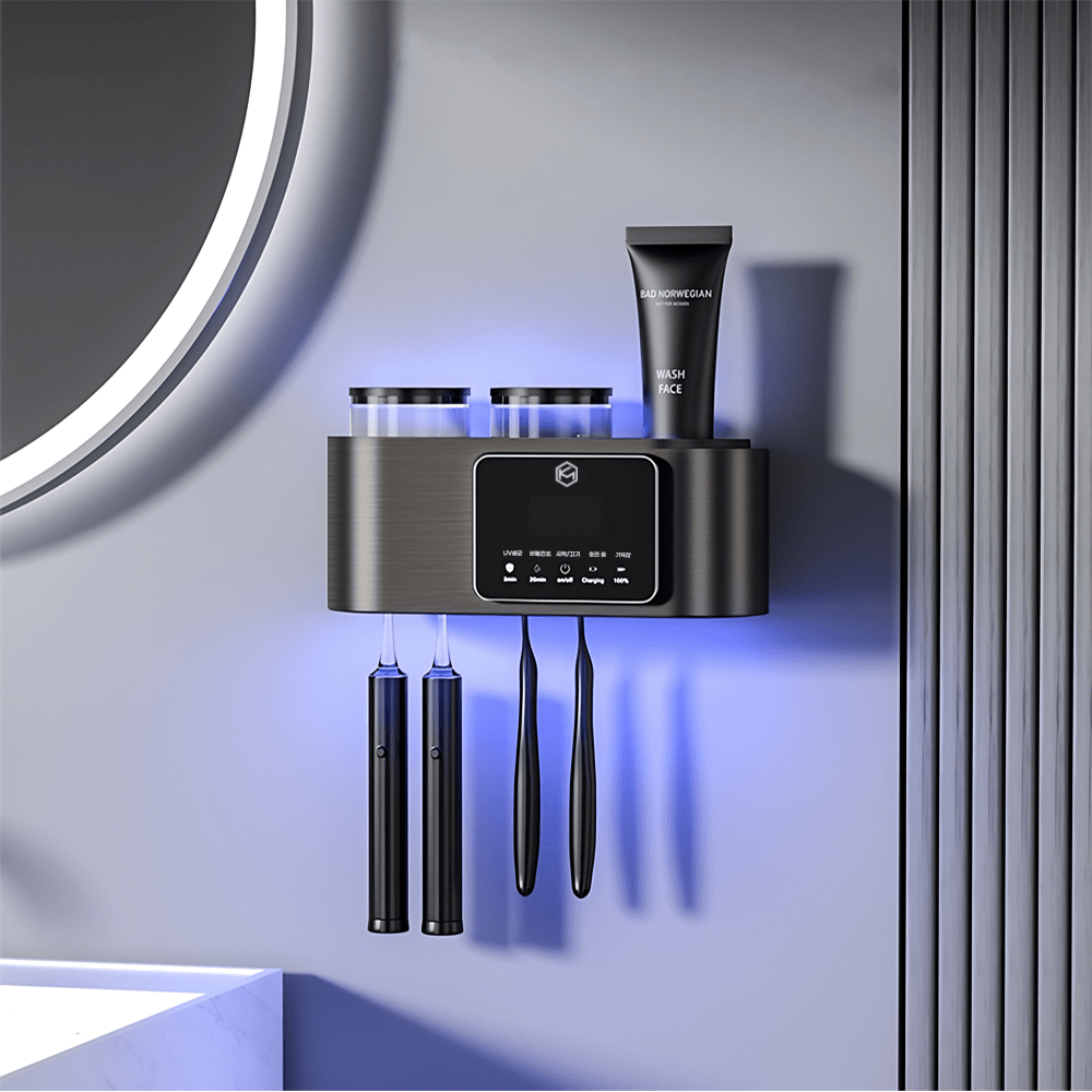 TEMU 무선 스마트 칫솔 소독 케이스,컵 2개 증정, 더하기USB 충전 가능, 광원 충전 가능, 구멍 없는 벽걸이식 설치가 간단하고 빠르다, 스마트 타이밍 작업 가능, 건조 기능, 네 개의 독립 송풍구, 탈부착식 디자인, 청소가 편리하며, 욕실, 구강 관리에 사용할 수 있다.