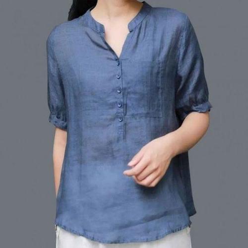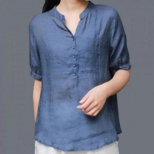 [에이치플러스몰]여름 인견 블라우스 반팔 여성 셔츠