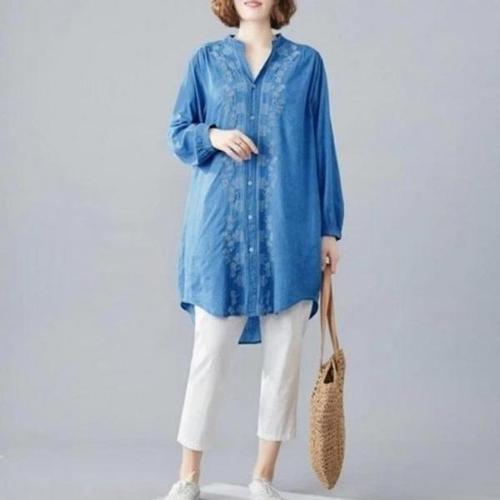 [트리아나]루즈핏 데님 셔츠형 블라우스 AJ3BA13_NV
