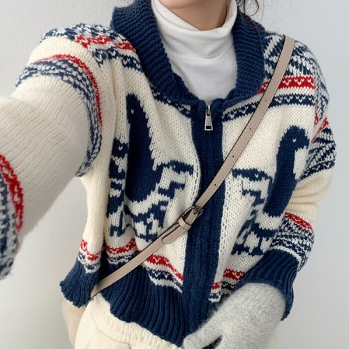 입꼬 / 버드 인디언 노르딕 카라 니트 집업