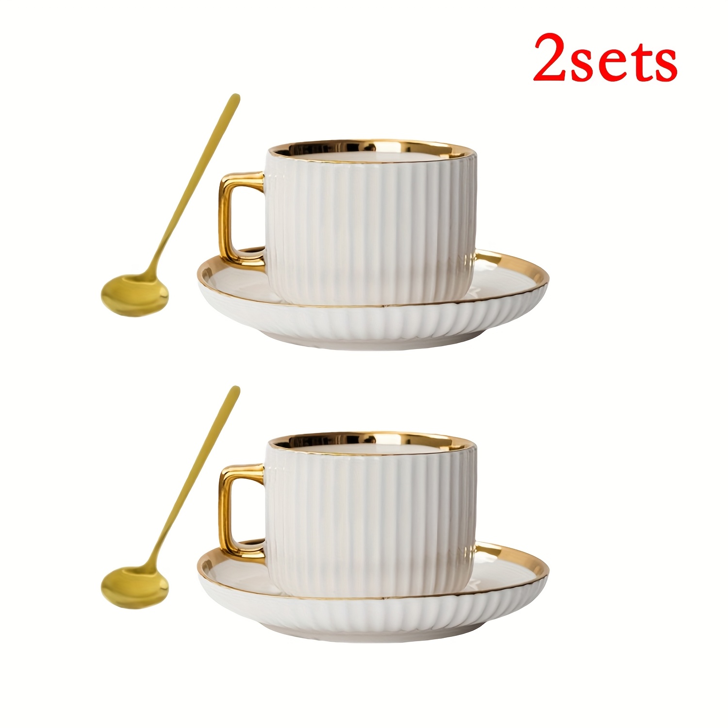 TEMU 2개 세트, 화이트 & 그린 커피컵, 유럽 스타일 골드 림 디자인 소서와 숟가락 포함, 애프터눈 커피 및 차용, 가정 주방 생활을 위한 고급 세트, 휴일 선물