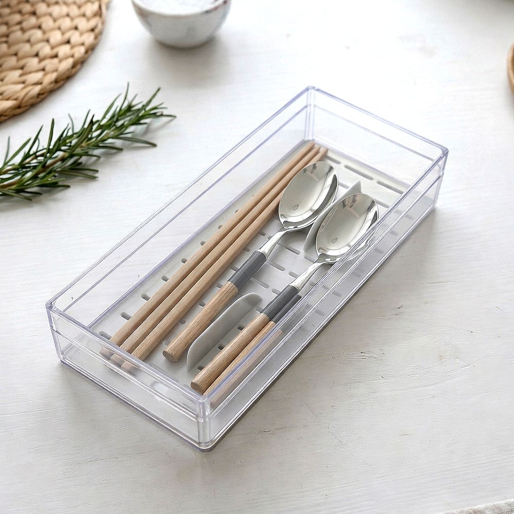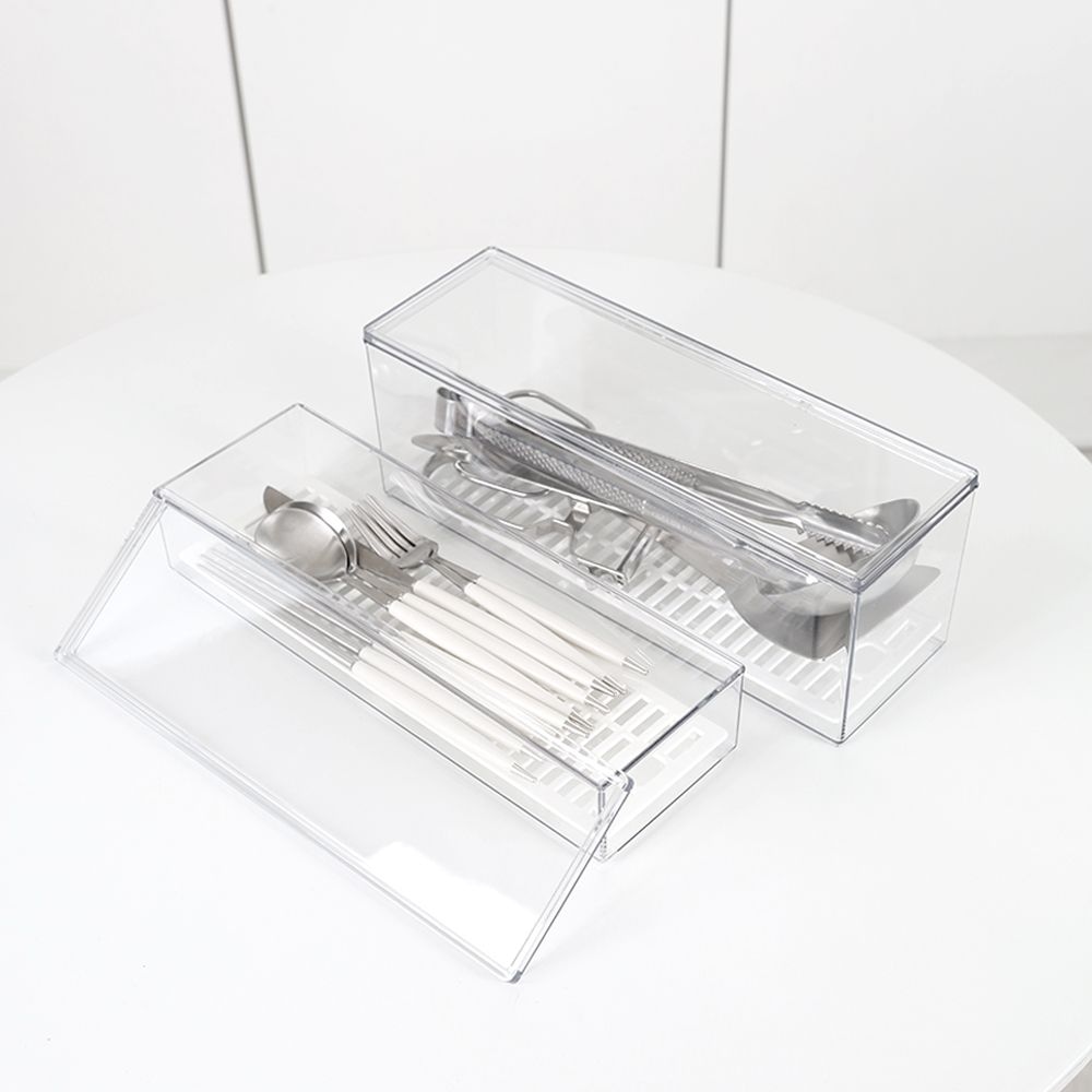 사각 뚜껑 수저통 (투명) 물빠짐수저통 커트러리정리함 케이스