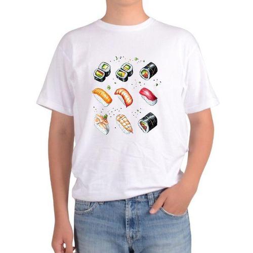 [에이치플러스몰]디자인 커플티 라운드티 모듬초밥 여성면티 일식