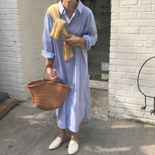 이쁘다요 스트라이프 셔츠 임산부 오버핏 빅사이즈 롱 원피스 WFLMPXS