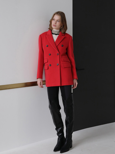 [까이에] [까이지엔느] 클래식 더블 버튼 울 자켓 코트_임페리얼 레드