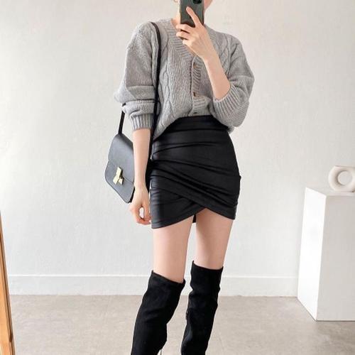 [다잇템]여자 레더 매트 쁘띠 가죽 잔주름 FW 스커트 (11688317A)