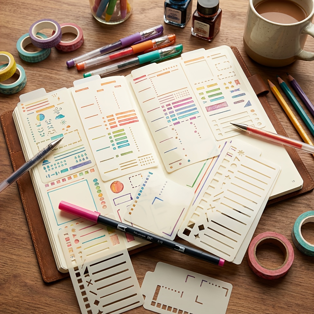 TEMU 12가지 유연한 플래너 템플릿 - 재사용 가능한 도트 그리드 스텐실, 저널, 창의적인 스티커 노트 스텐실, 체크리스트, 일일 계획, 캘린더, 불렛 저널, 바인더에 이상적; 저널 필수품 | 세련된 템플릿 디자인 | 내구성 있는 템플릿, 깔끔한 레이아웃, 오래가는 소재, 사무실 정리 용품. (3인치*6인치)