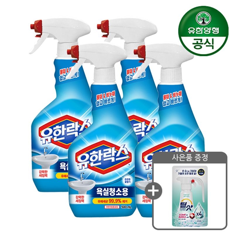 유한락스 욕실청소용 500ml 4개 + 세탁세제 틸샷 리필 500ml