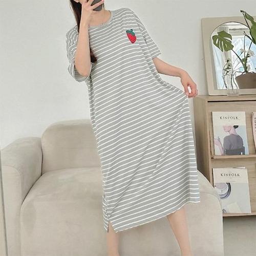 [모노무드]모노무드 롱원피스 지지미 여름 반팔 원피스 여성 홈웨어 캐주얼 잠옷