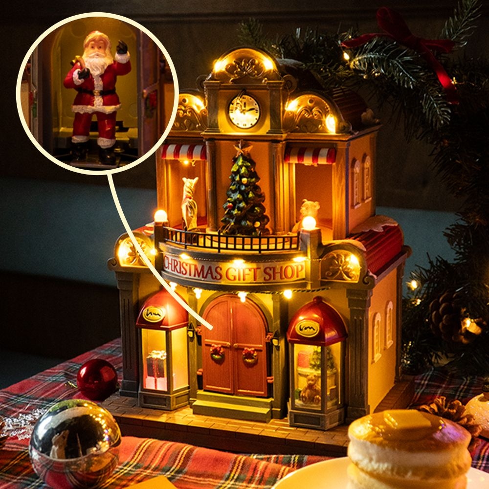 TEMU 클래식 레진 산타 클로스 썰매와 사슴 장식 - 전원 불필요,松과 눈꽃이 있는 축제 분위기의 눈꽃 장면, 침실 또는 거실 테이블 장식에 적합
