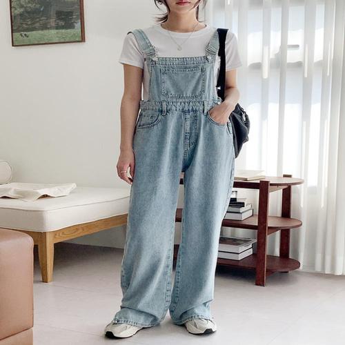 여성 와이드 데님 멜빵바지 1p 청 통 봄가을 점프슈트 점프수트