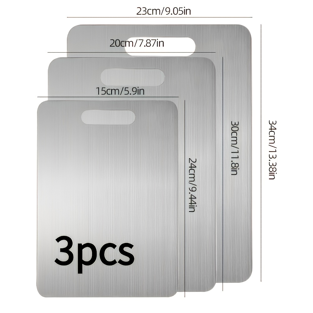 TEMU 3개 스테인리스 스틸 도마 세트 - 양면 식품 등급 201 스테인리스 스틸, 부드러운 표면으로 주방 및 식사용, 내구성 있고 쉽게 청소할 수 있음, 요리 준비, 야채 슬라이싱, 고기 절단에 완벽함, 주방 필수품 | 현대적인 주방 용품 | 튼튼한 주방 용품