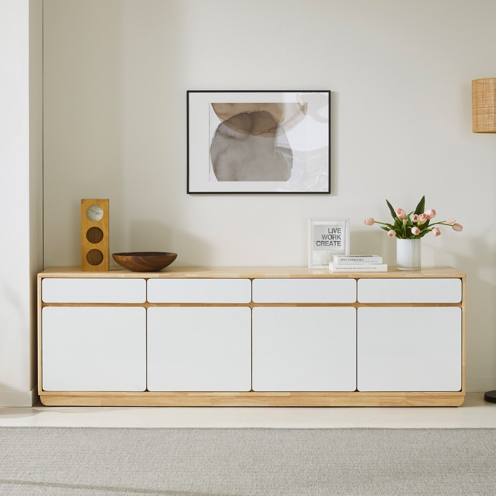 고무나무 원목 네추럴 화이트 콤비 높은 TV거실장 티비다이 2000