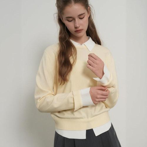 [제너럴아이디어]WOMAN 릴렉스드 카라 레이어드 풀오버 [BUTTER] / GF1LKP502