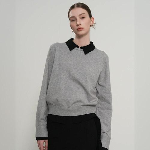 [제너럴아이디어]WOMAN 릴렉스드 카라 레이어드 풀오버 [GREY] / GF1LKP502