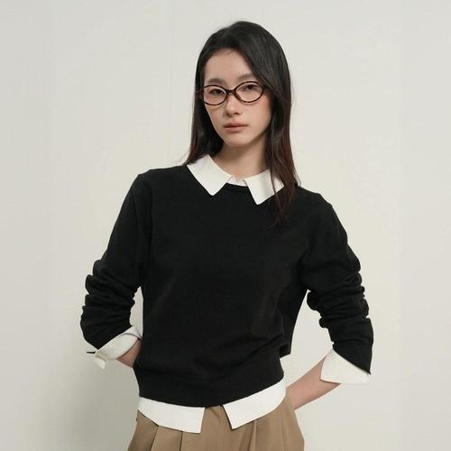 [제너럴아이디어]WOMAN 릴렉스드 카라 레이어드 풀오버 [BLACK] / GF1LKP502