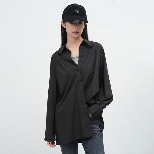 [제너럴아이디어]WOMAN 프릴 카라 루즈핏 셔츠 [BLACK] / WBE3L03514