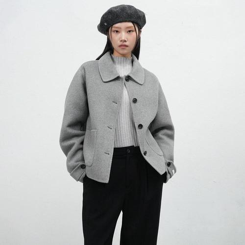 [제너럴아이디어]WOMAN 울 카라 핸드메이드 숏 코트 [MELANGE GREY] / WBE3L10511