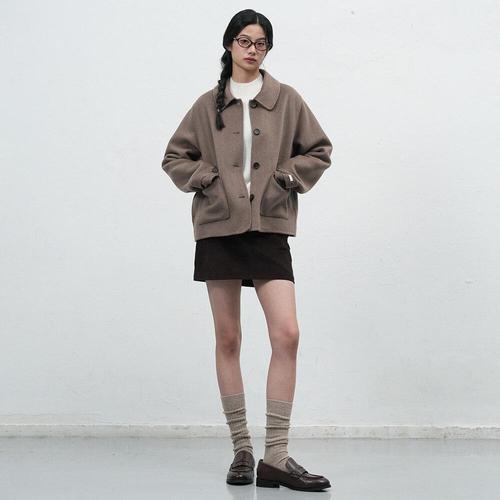 [제너럴아이디어]WOMAN 울 카라 핸드메이드 숏 코트 [MOCHA] / WBE3L10511