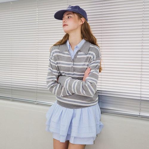 [제너럴아이디어]WOMAN 멀티 스트라이프 루즈 카라 니트 [LIGHT GREY] / WBE1L05503