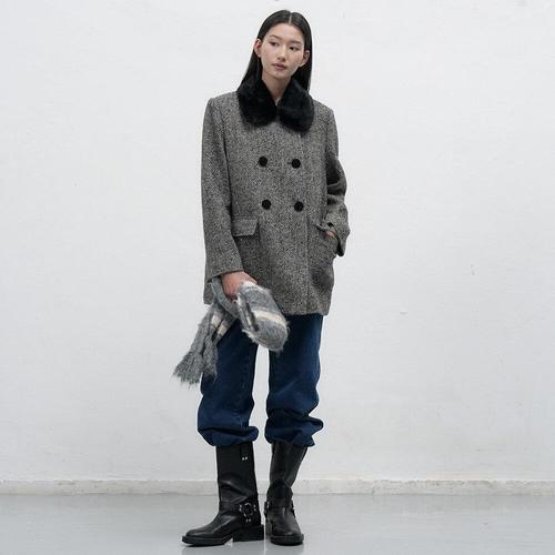 [제너럴아이디어]WOMAN 퍼카라 헤링본 더블 하프 코트 [BLACK] / WBE4L10524