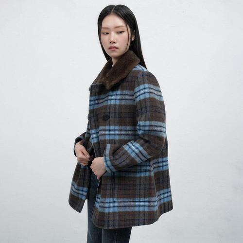 [제너럴아이디어]WOMAN 퍼카라 체크 하프 울 코트 [BROWN] / WBE4L10518