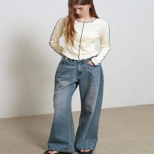 [제너럴아이디어]WOMAN 스캘럽 세미 와이드 데님 팬츠 [BLUE] / WBE4L11512