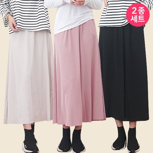 ★2종세트★ A라인 롱 플레어 밴딩 스커트 / 편안한 롱스커트 / 데일리룩 / 홈웨어 / 0231