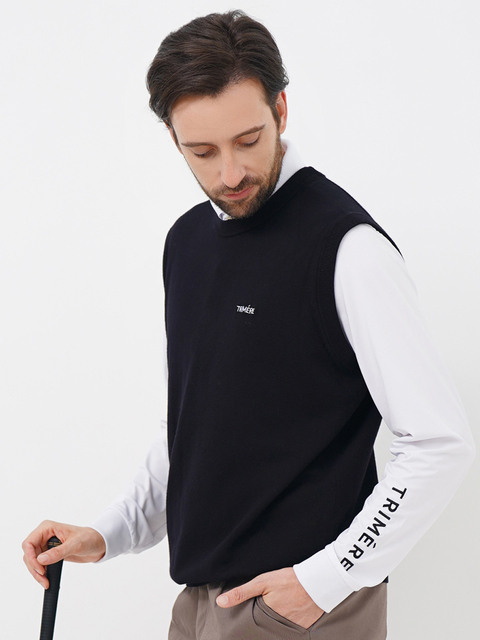 [트리메르] 베이직 폰트 니트 베스트 BLACK