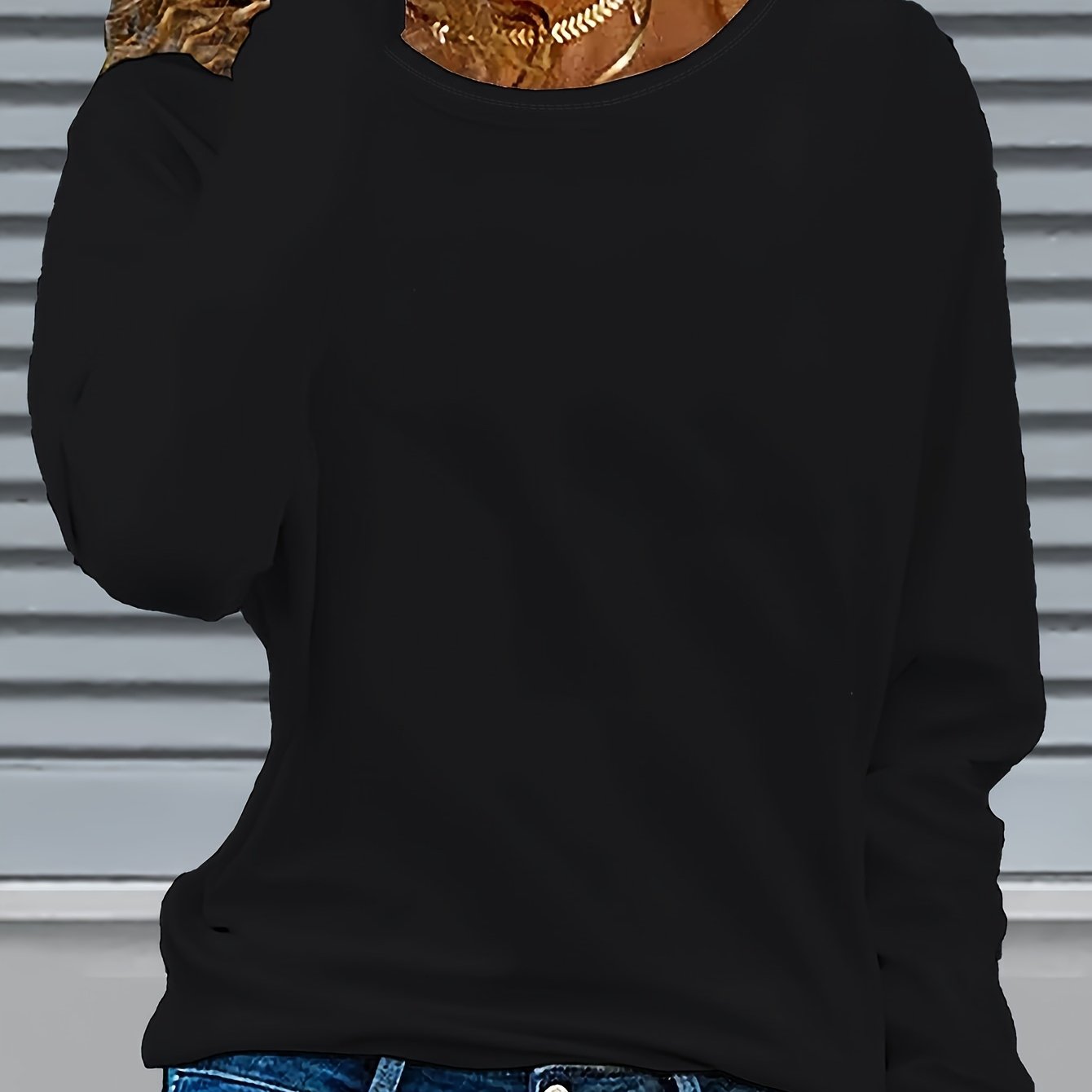 TEMU 세련된 컬러풀 프린트가 돋보이는 패셔너블한 여성용 긴팔 티셔츠, 라운드넥 캐주얼 탑, 중간 정도의 신축성, 불투명한 원단, 다용도 캐주얼, 여성용 긴팔 티셔츠