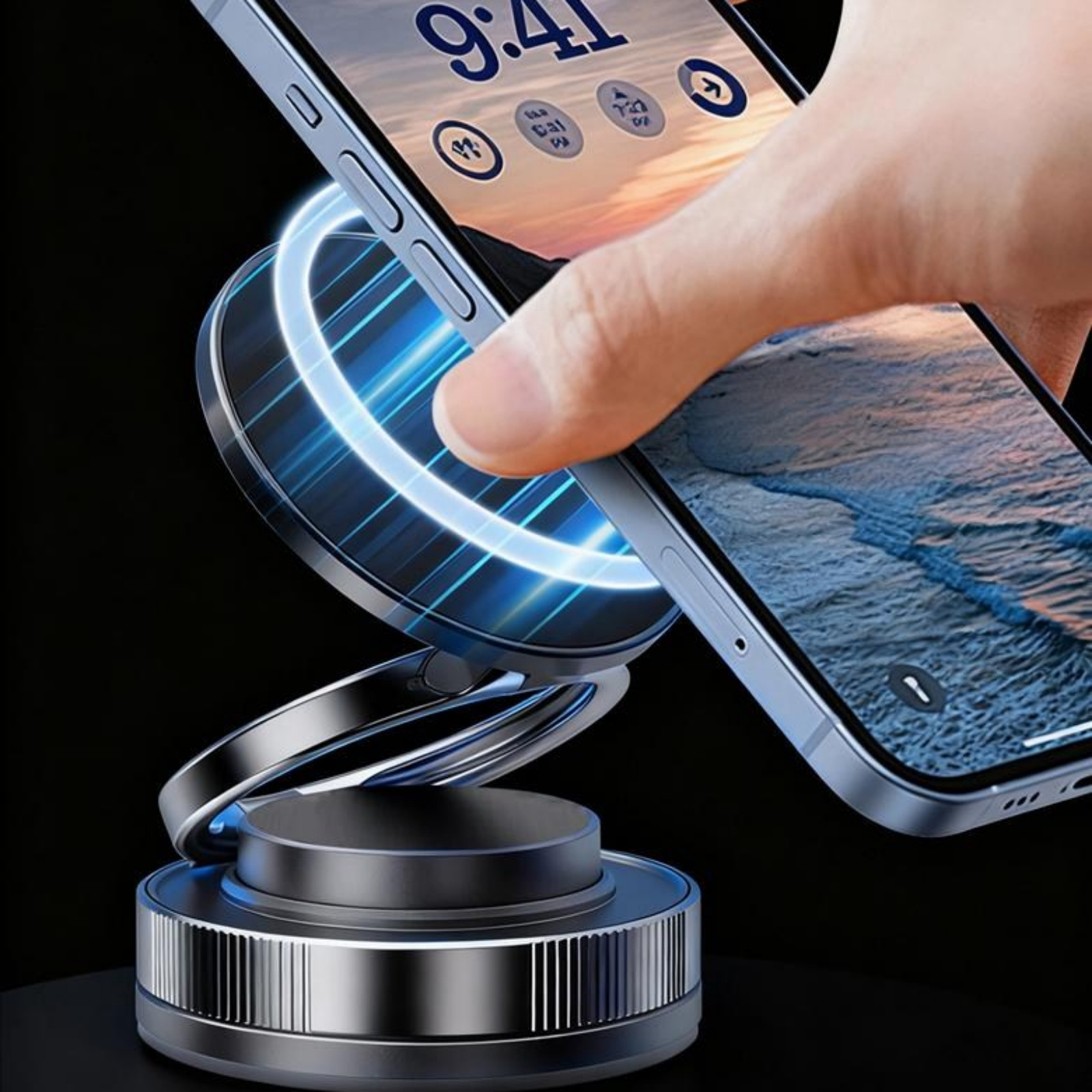 TEMU 진공 흡착 자석 차량용 휴대폰 거치대 초강력 자력 대시보드 부착식 360도 회전 흔들림 방지 안정 고정