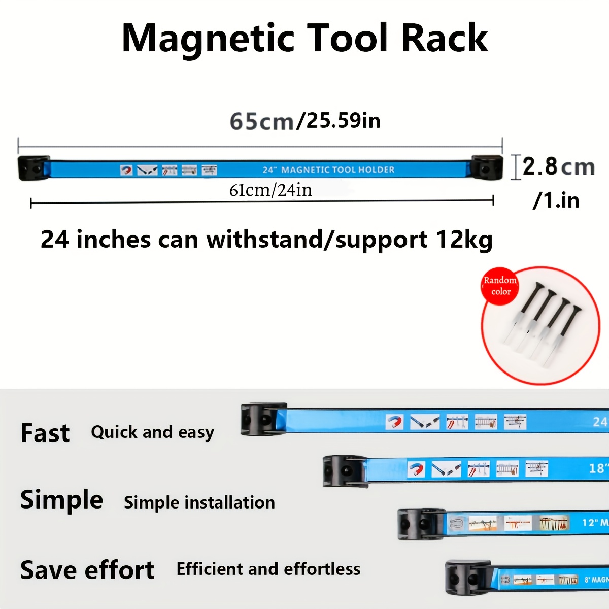 TEMU 12"/24" 헤비듀티 자석 공구 랙 - 블루 라벨 슬롯 및 공구 브래킷 포함, 차량 보관 시스템, 간편 조립, 공간 절약형 수직 공구 정리대, 작업실, 주방, 가정, 차고에 적합