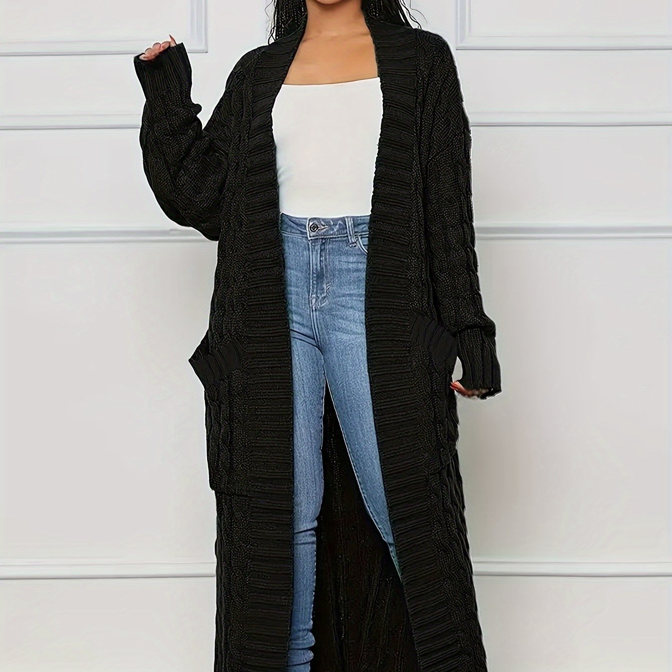 TEMU 플러스 사이즈 - 우아한 V넥 롱 카디건 | 여성용 패셔너블 캐주얼 단색 스웨터, 가을/겨울 시즌, 중간 정도 신축성 있는 원단.