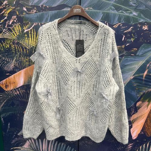 [르니앤맥코이]리본브로치브이넥그물니트MN02KN771_IC