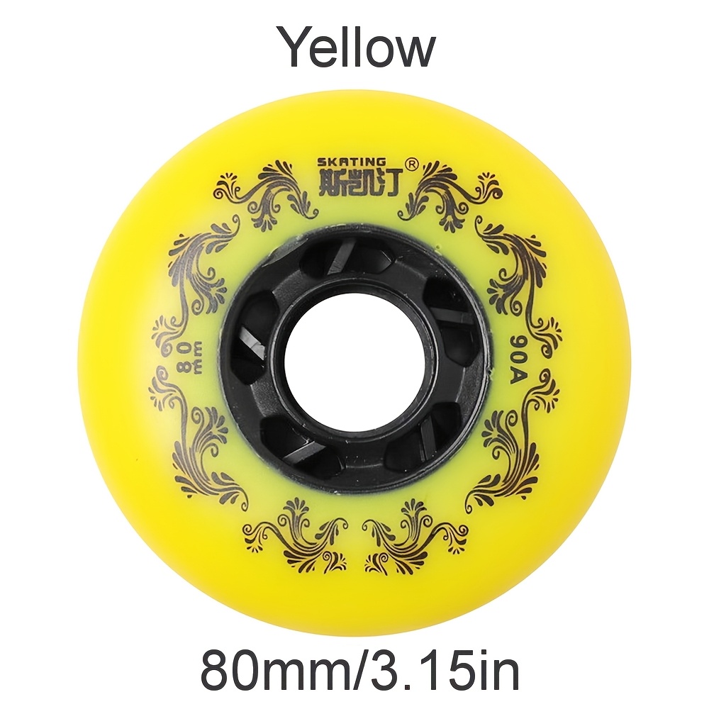 TEMU 롤러 스케이트 & 아이스 스케이트용 튼튼한 90A 휠 1개 - 흰색/노란색, 플랫 슈즈에 맞음, 사이즈 72mm/76mm/80mm (베어링 미포함)