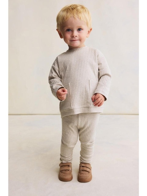 [에이치엔엠] 리브드 코튼 2피스 세트 라이트 베이지 1306397003