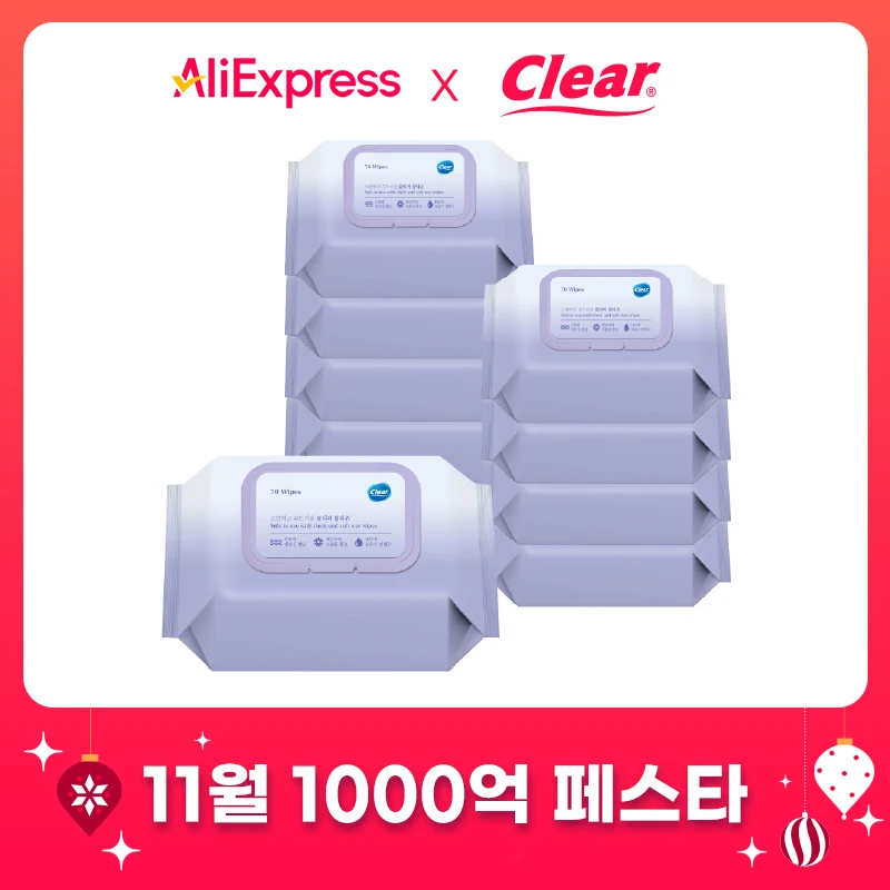 고평량 63gsm 도톰한 클리어 시그니처 저자극 물티슈 70매 10팩 (캡형)