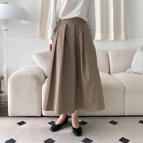 여성 뒷밴딩 사이드 빅포켓 앞주름 A라인 롱 스커트 DGB-WSK-4325-모카