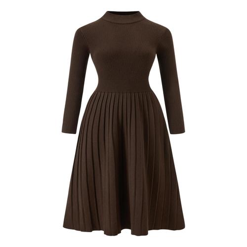 ZAJA 여성 롱 원피스 긴팔 주름 니트 원피스