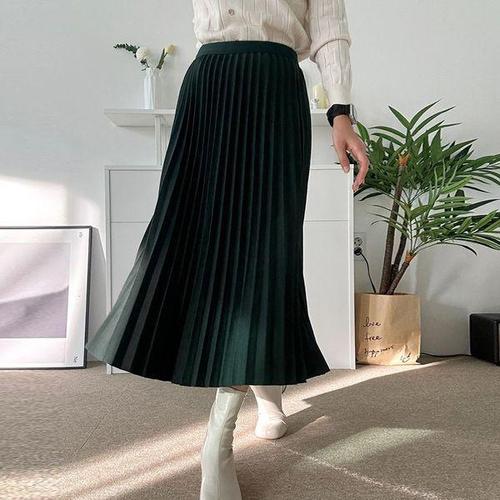 [유야]플리츠 주름 롱스커트 밴딩 주름 치마 -SK0199H- 여성 가을 겨울