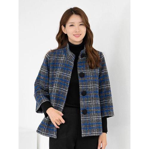 [모슬린]엄마옷 울모직 카라 잔체크 정장 망토자켓 MQG125190 마담 미시 중년여성 빅사이즈 할머니옷 50..